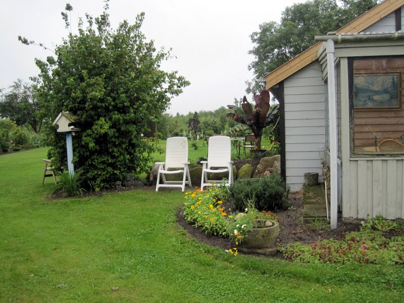 Jeg har luget rundt ved udestuen i dag. Foran ved begge sider af døren har jeg plantet nogle Storkenæb.